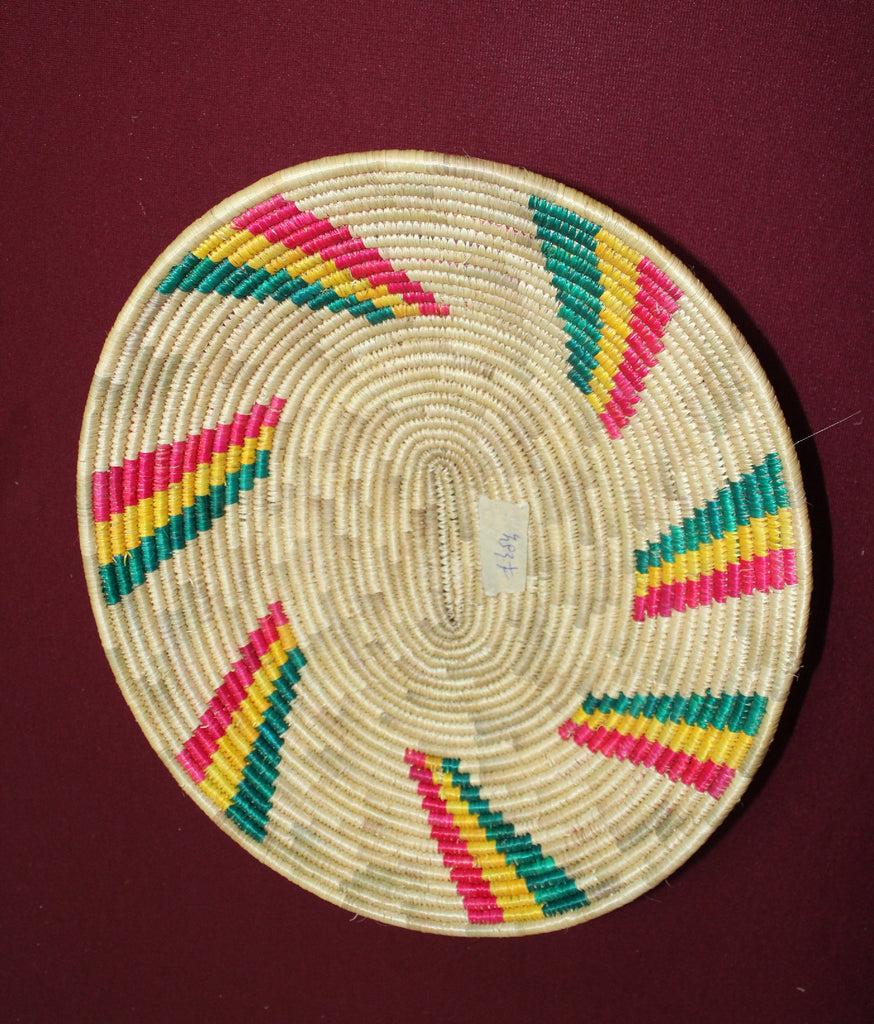 Description: Handwoven Basket   Pink, Yellow, Green, Natural  - Oval