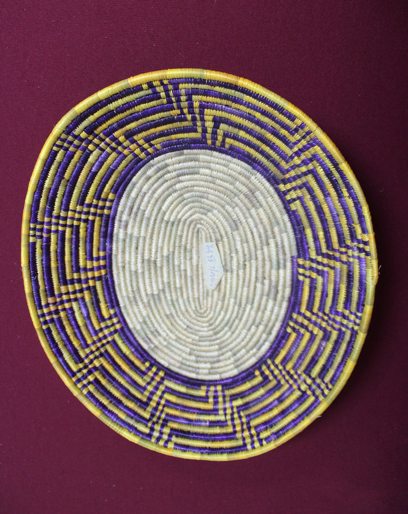 Description: Handwoven Basket Purple, Yellow, Natural - Oval