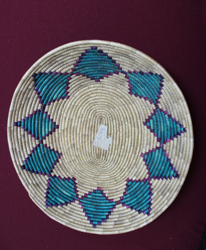Description: Handwoven Basket   Purple, Green, Natural  - Oval