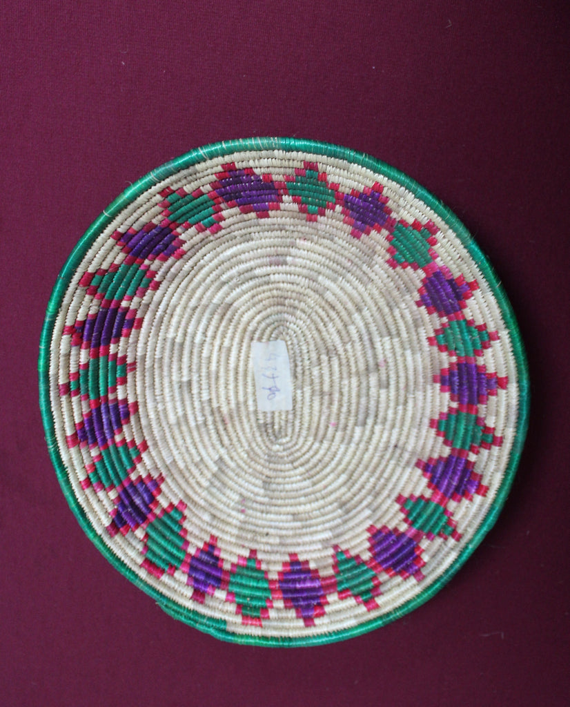 Description: Handwoven Basket Green, Red, Purple, Natural - Oval