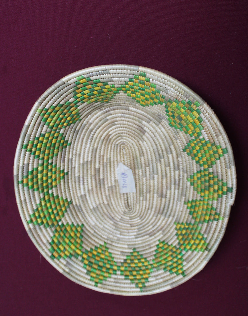 Description: Handwoven Basket    Green, Yellow, Natural  - Oval