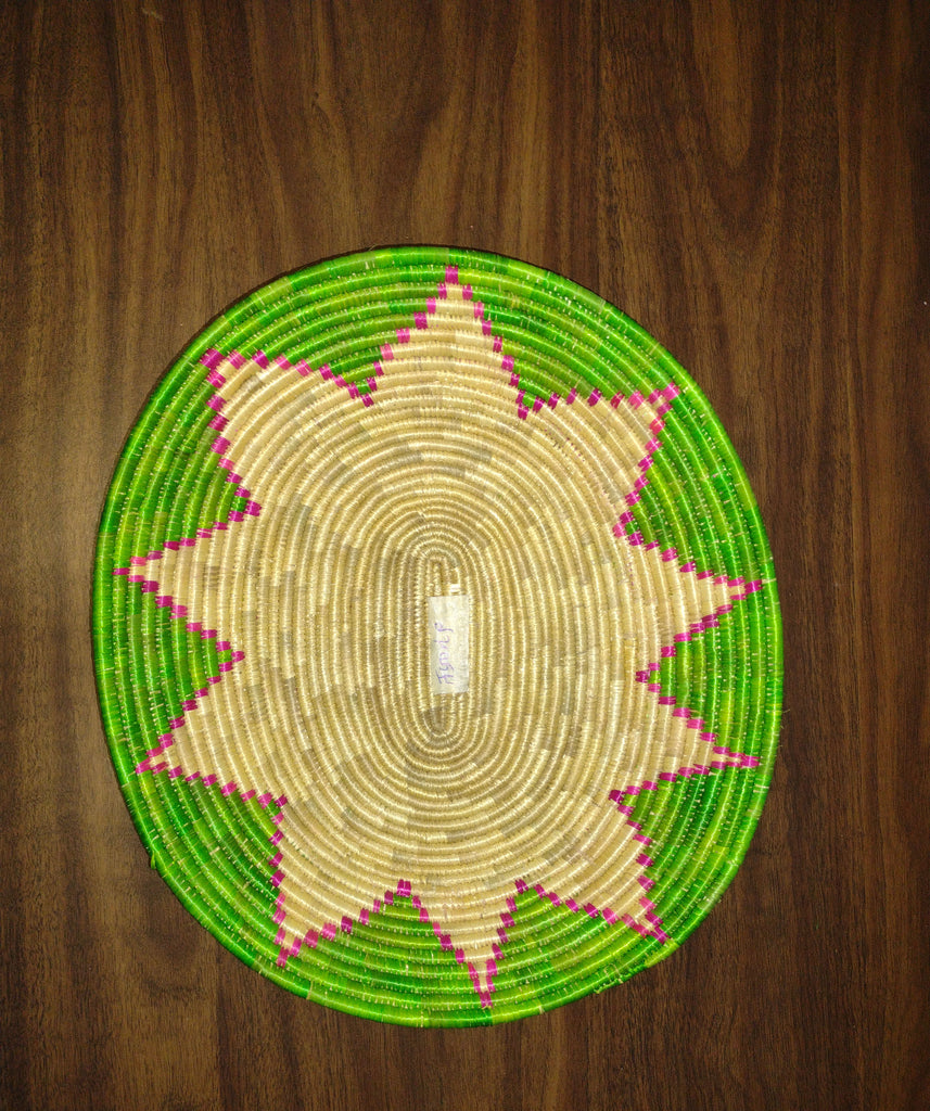 Description: Handwoven Basket   Purple, Green, Yellow, Natural - Oval