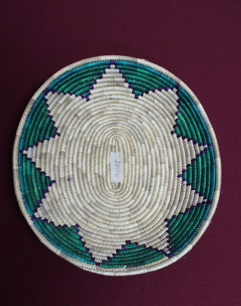Description: Handwoven Basket     Green, Purple, Natural  - Oval