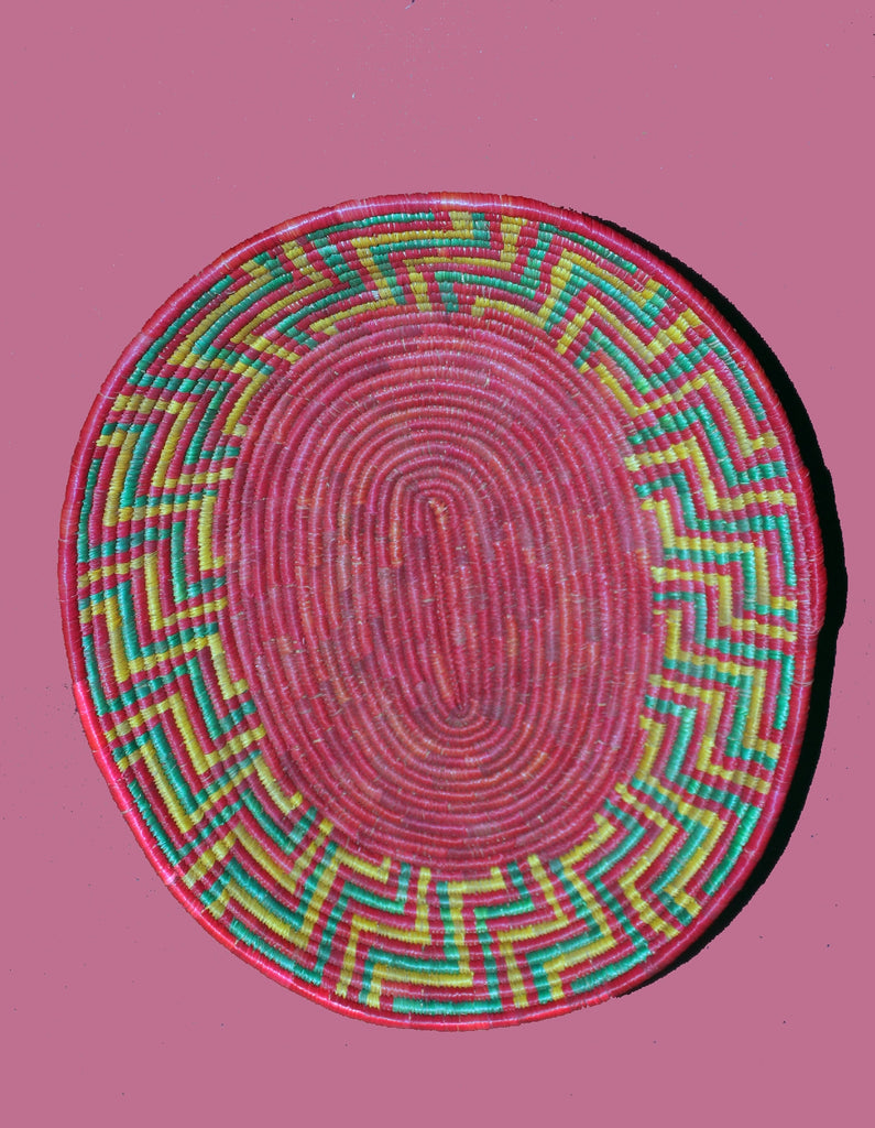 Description: Handwoven Basket   Red, Green, Yellow,  - Oval