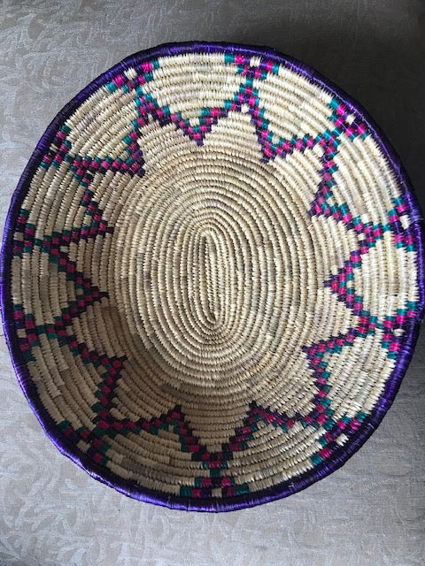 Description: Handwoven Basket - Purple, Pink, Blue, Natural - Oval