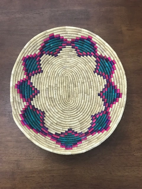 Description: Handwoven Basket - Purple, Pink, Blue, Natural - Oval